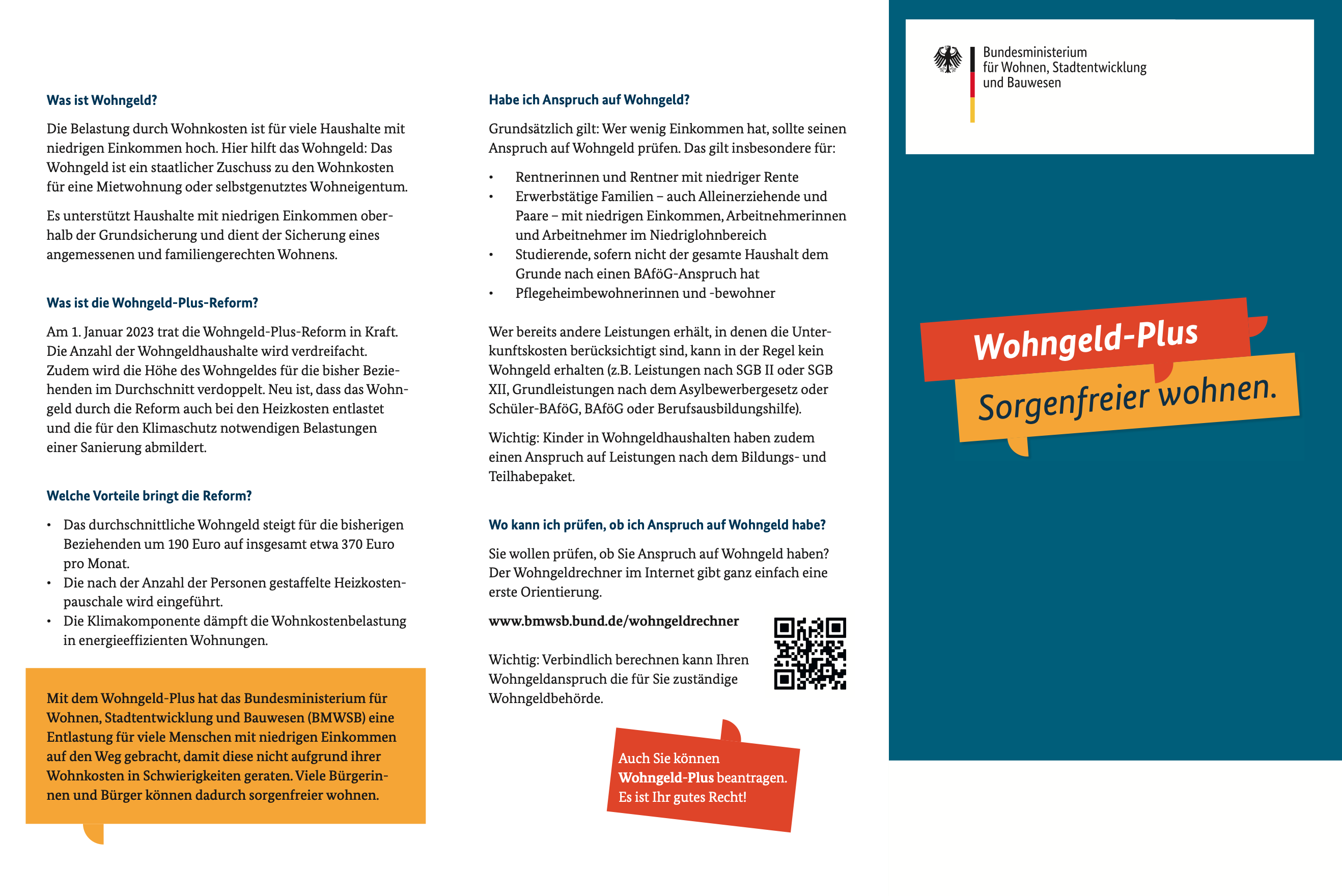 Die Höhe des Wohngeldes hängt davon ab, wo die Menschen wohnen, wie viele Personen im Haushalt leben und wie viel Geld diese im Monat zur Verfügung haben. Ob ein Anspruch auf Wohngeld-Plus besteht, können Bürgerinnen und Bürger unkompliziert mithilfe des Wohngeldrechners des BMWSB prüfen.